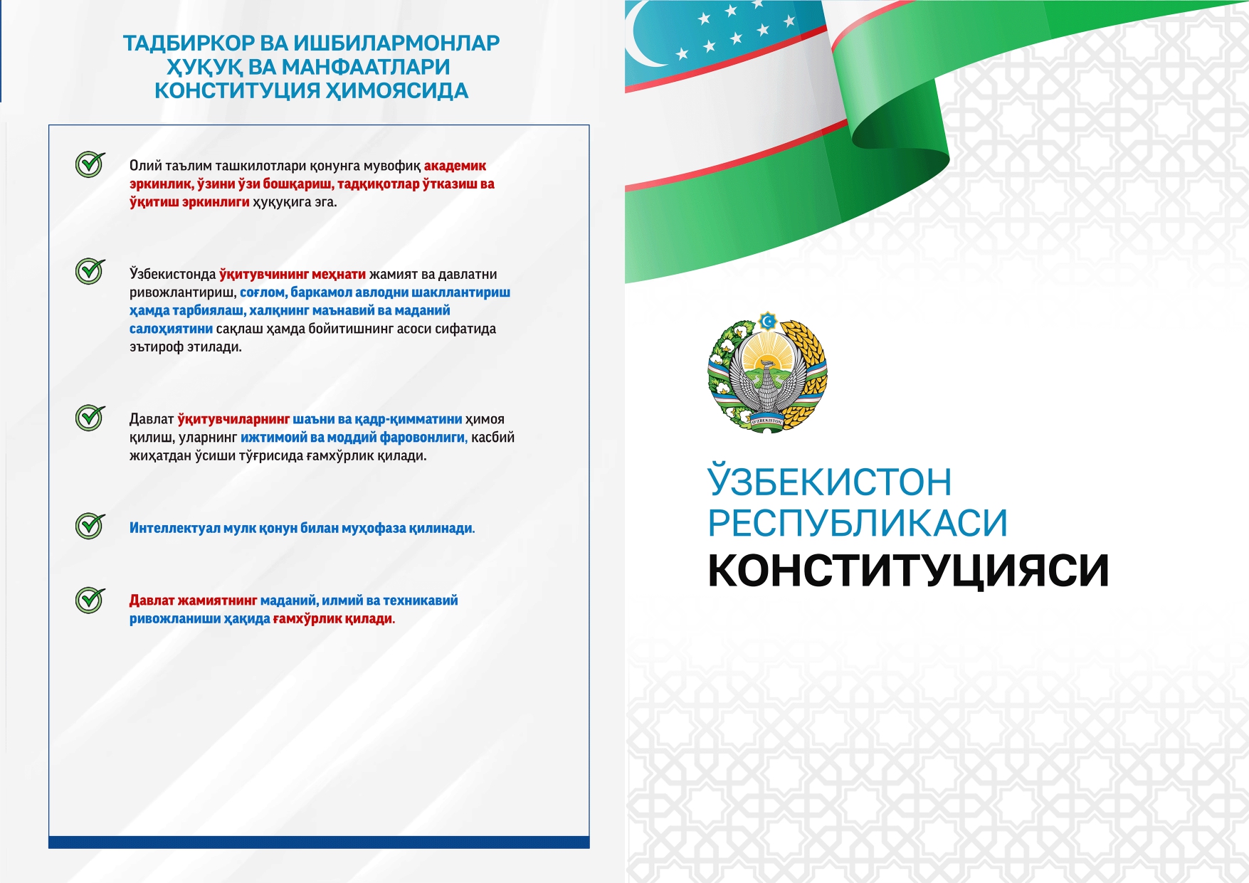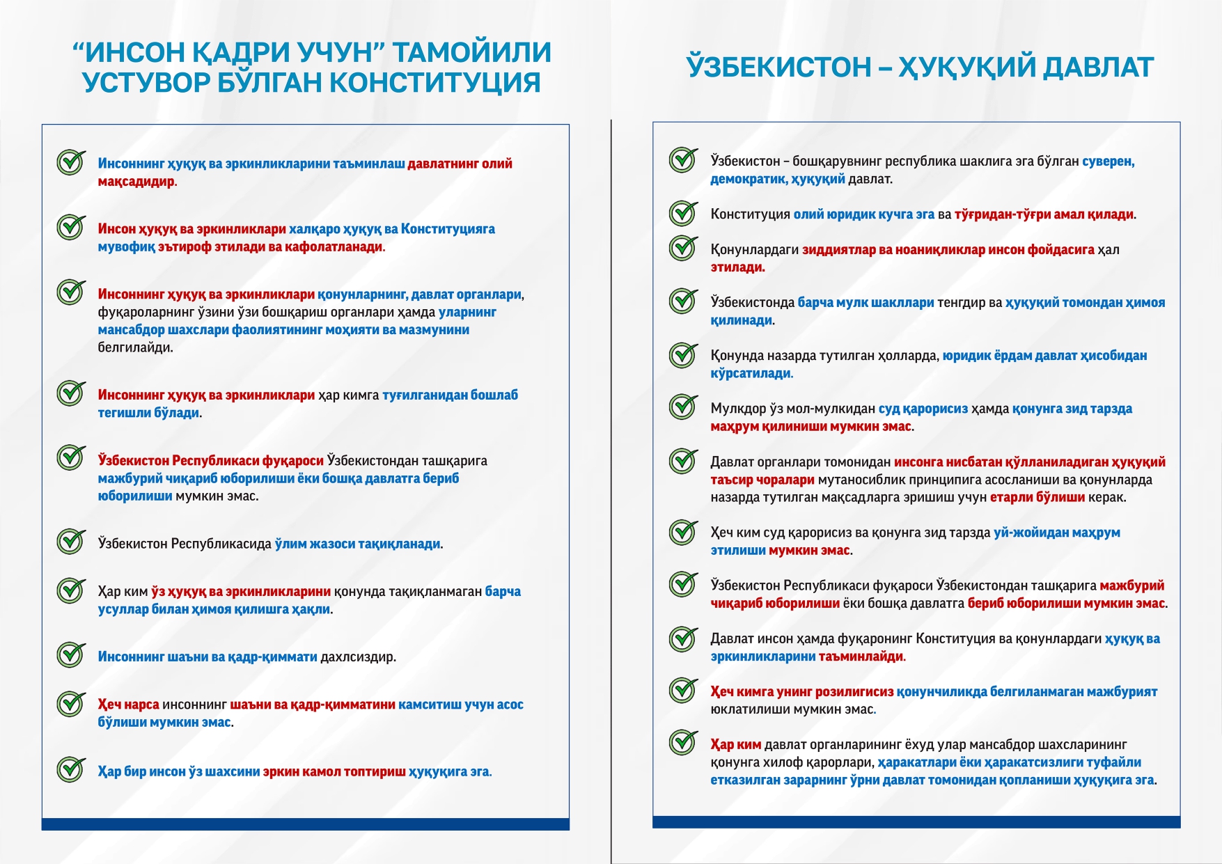 O‘zbekiston Respublikasi Konstitutsiyasining mazmun-mohiyati (broshyuralar )