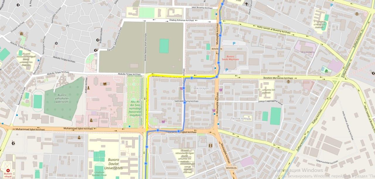 Shundan kelib chiqib, Buxoro shahrida brutto shartnoma asosida harakatlanuvchi 10-sonli "Alpomish ko'chasi-Sheyxoncha MFY" avtobus yo'nalishining harakat sxemasiga o'zgartirish kiritilishini ma'lum qilamiz.